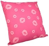 - Throw Pillow with red background and pink kisses